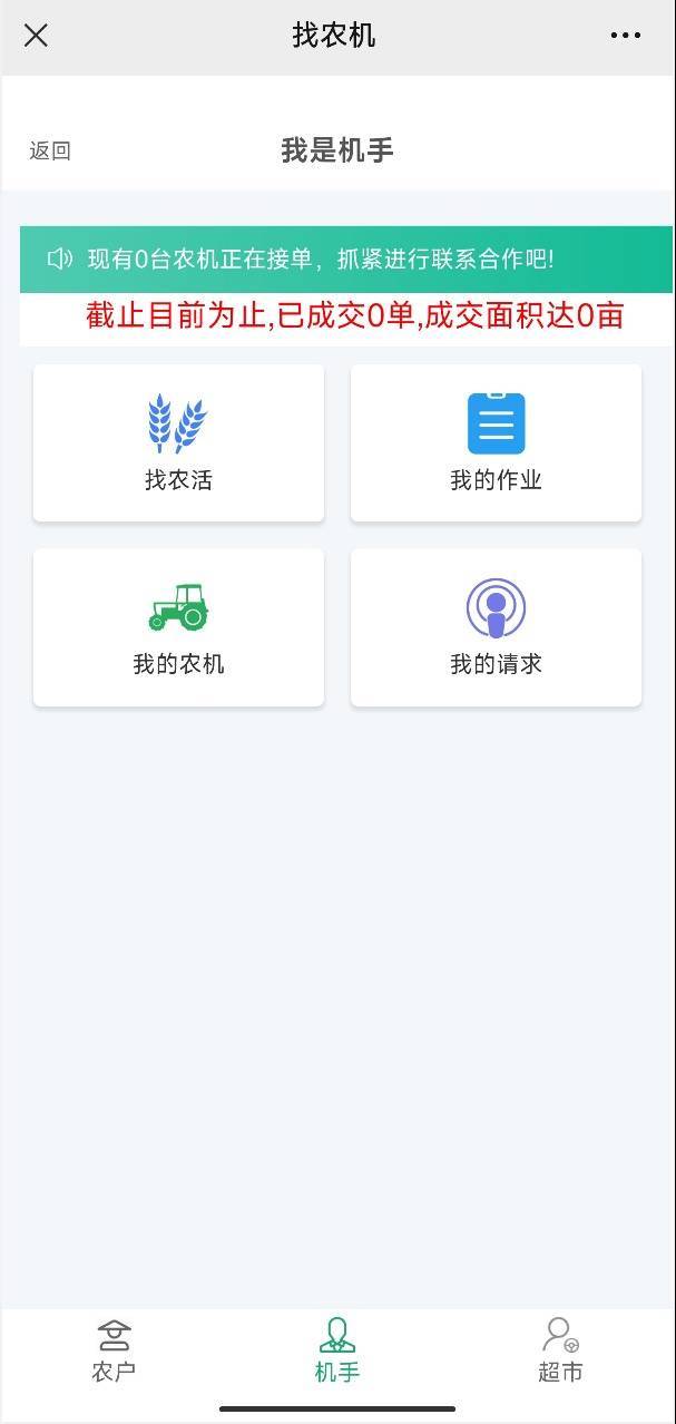 9.机手可在【机手】端口查找农活、发布农机信息;操作过程与农户找农机流程一致。